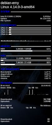 A questo punto ci sono tantissimi siti che offrono soluzioni già pronte da copiare all'interno di conkyrc, una customizzata da me è scaricabile al seguente link conkyrc